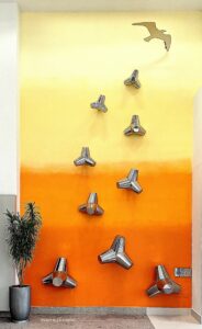 5 – Atalaia – elaborado pelo artista Wences – painel em aço inox afixado no hal de entrada do Hospital Unimed Itajaí. Inaugurado a 15 de junho de 2025.