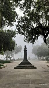 O Monumento foi projetado pelo escultor Antonino de Mattos pelo valor de vinte contos de réis. Como o artista tinha ateliê no Rio de Janeiro, a tradicional empresa de navegação costeira Companhia Hoepcke fez o transporte das peças até Itajaí em um de seus navios que faziam a rota entre os portos do Rio de Janeiro e Itajaí no ano de 1930. Contudo, nesse período irrompe a Revolução Trinta e todas as peças da homenagem ao ‘maior dos catarinenses’ ficam guardadas por um período de cinco anos em armazém da Companhia Konder. No ano de 1935 alunos do Curso Complementar do Grupo Escolar Victor Meirelles tomam a iniciativa de solicitar ao prefeito Arno Bauer a montagem oficial do obelisco. Mas, por questões políticas, a obra de arte teve de ficar mais um tempo guardada no depósito, até que no ano de 1938, o prefeito Irineu Bornhausen toma a iniciativa de montá-la em praça pública. Acontece que o pedestal foi posto de forma que o busto de Lauro Müller ficava voltado para o Rio Itajaí (para contemplar a sua grande obra em Itajaí como Ministro dos Transportes – as obras da barra do rio) ficando de costas para a frente da Igreja Imaculada Conceição, fato que desagradou o vigário e muitos membros da congregação católica da cidade. Assim sendo, por quase um século o busto de Lauro Müller ficou de frente para a igreja, mas de desacordo com as inscrições contidas no pedestal de granito. No ano de 2024 o busto em bronze foi alvo de vandalismo, chegando a ser retirado do pedestal para ser vendido em estabelecimentos de ‘ferro velho’. A polícia chegou a tempo de interromper o ato de vandalismo colocando a obra de arte sob guarda da Prefeitura de Itajaí. No final do ano de 2024 foi providenciada a volta do busto ao seu local de origem, contudo, o engenheiro responsável optou por coloca-lo de acordo com as inscrições do pedestal, isto é: com o rosto de Lauro Müller de frente para o Rio Itajaí e de costas para a Igreja Imaculada Conceição, nossa Igrejinha Velha. Assim, Itajaí ganha mais uma curiosidade cultural. As fotos até 2024 terão Lauro Müller contemplando a Igreja Imaculada, enquanto as fotos após 2024 terão o ‘maior dos catarinenses’ contemplando o Rio Itajaí, aquele mesmo que ajudou a domar, com grandes obras de infraestrutura, sua agitada barra.