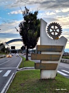 O Rotary Club é uma instituição internacional, com seccionais no Município de Itajaí. Uma das maneiras encontradas pela entidade para comunicar aos visitantes que a cidade possui uma seccional é a instalação nas vias de entrada de um ‘marco rotário’. Nele está contido o símbolo da entidade, bem como o endereço e horário das reuniões semanais. Com o advento das novas tecnologias de comunicação – como é o caso do celular conectado à Internet e Redes Sociais – esse sistema ficou obsoleto e passou a ser utilizado apenas como referência visual da presença da entidade na cidade.
